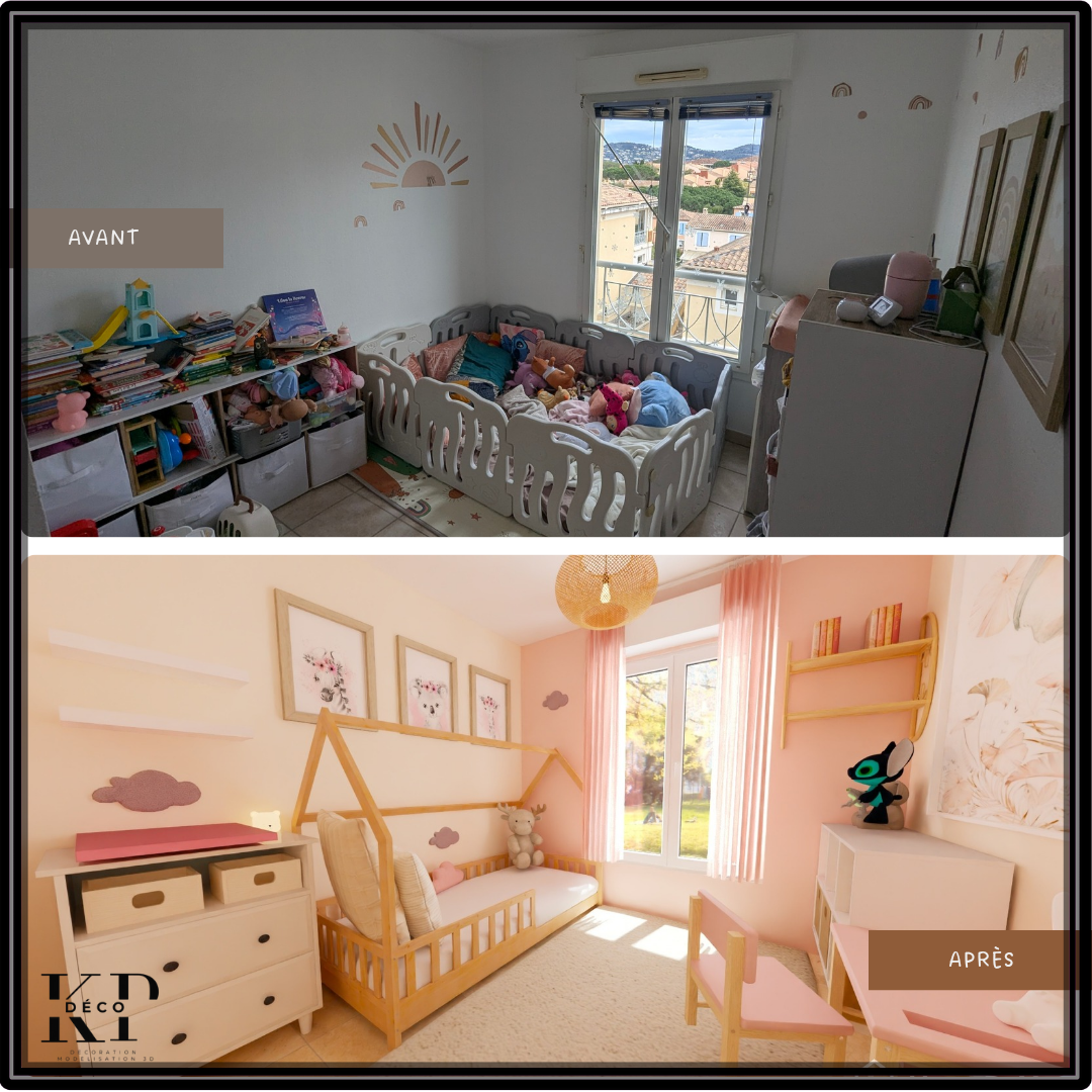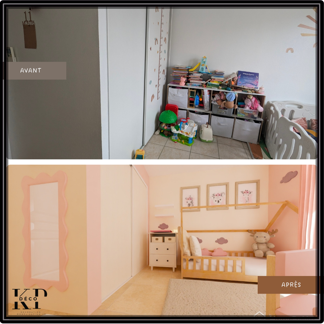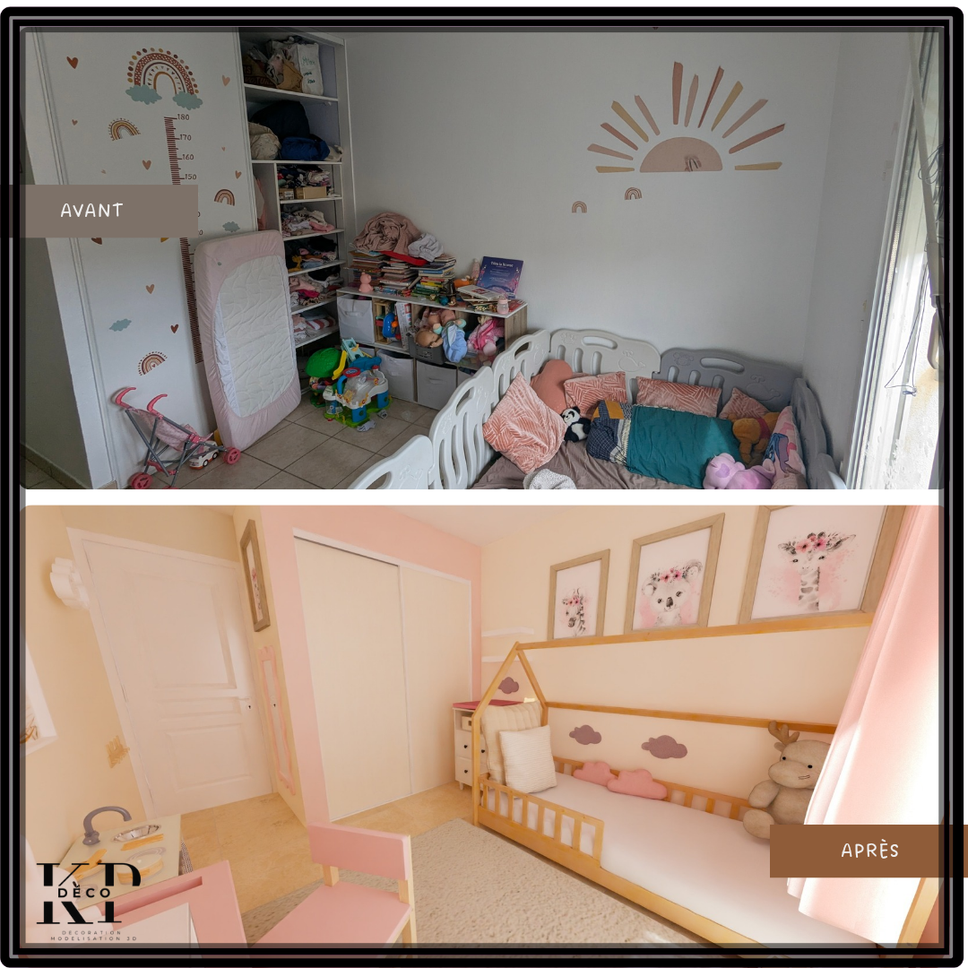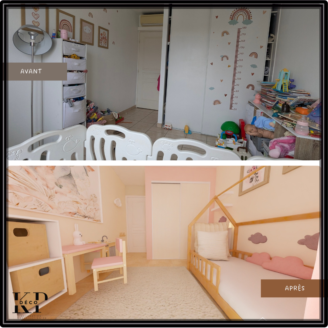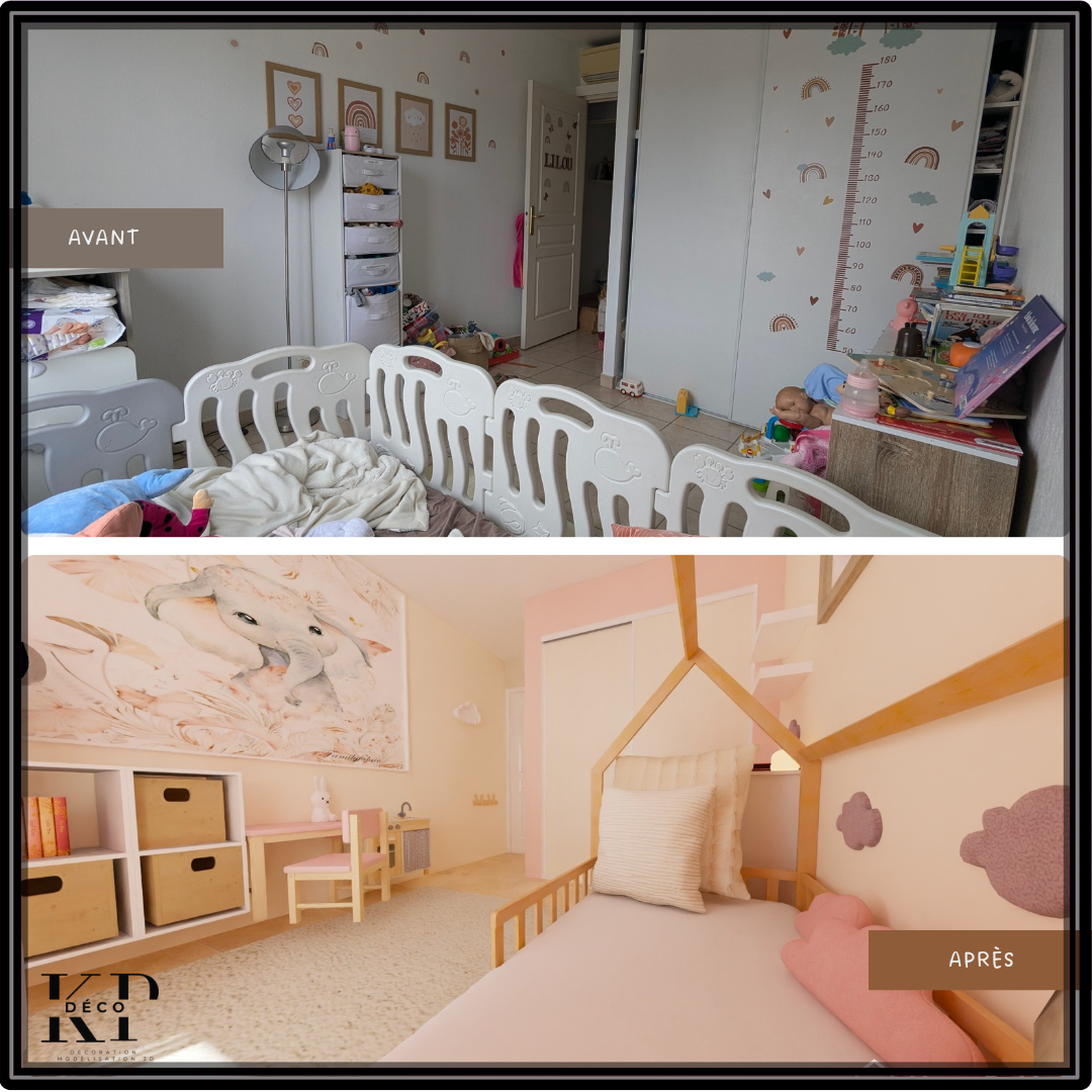 Ma cliente, locataire, souhaitait offrir à sa fille de deux ans une chambre à la fois jolie, fonctionnelle et modulable. L’objectif ? Optimiser l’espace avec des rangements adaptés et une organisation pensée pour évoluer avec l’enfant. En réaménageant la pièce, nous avons créé un cocon pratique et chaleureux, où chaque élément trouve sa place tout en laissant de la liberté pour grandir en douceur.
