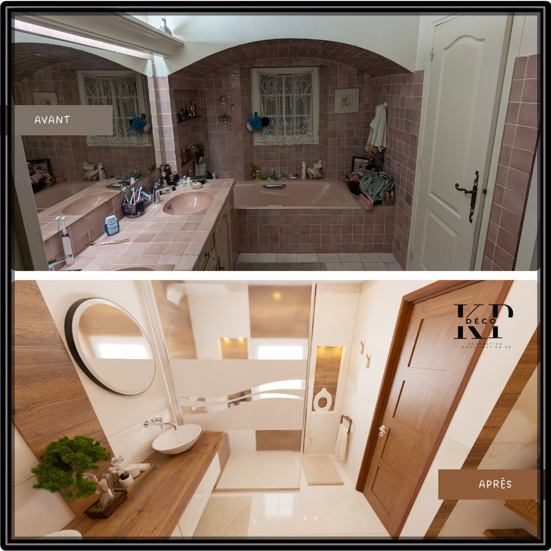 Salle de Bain Marbre et Bois