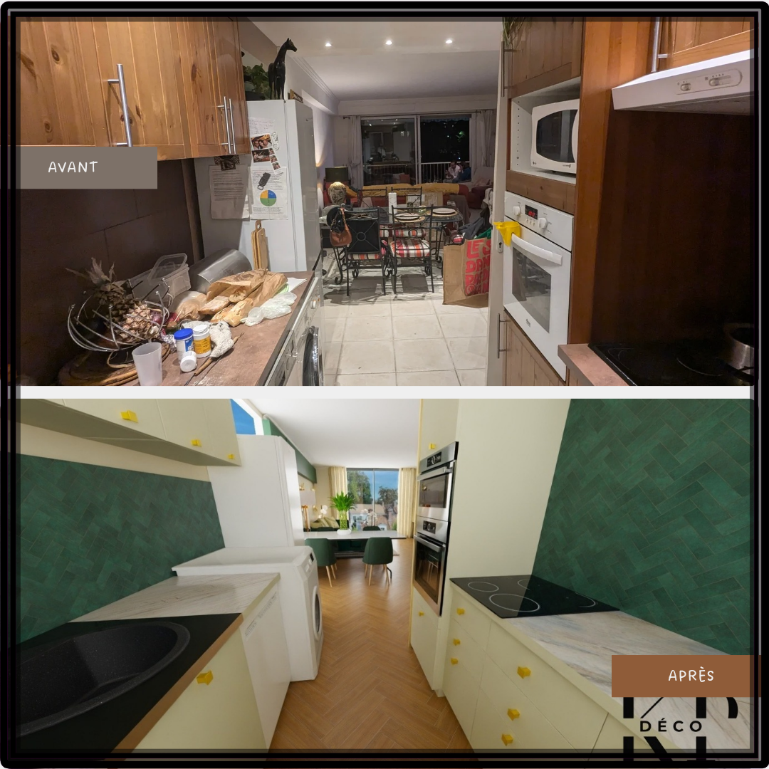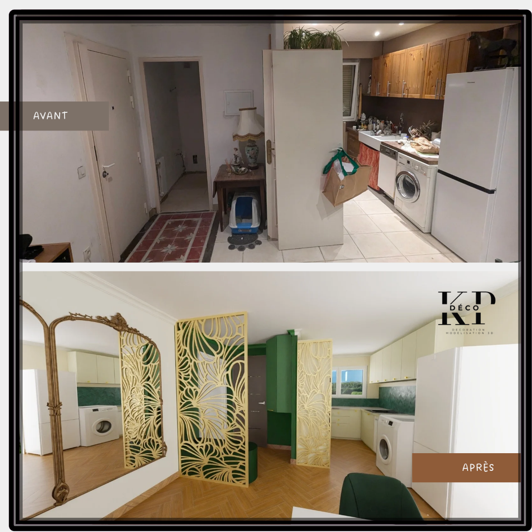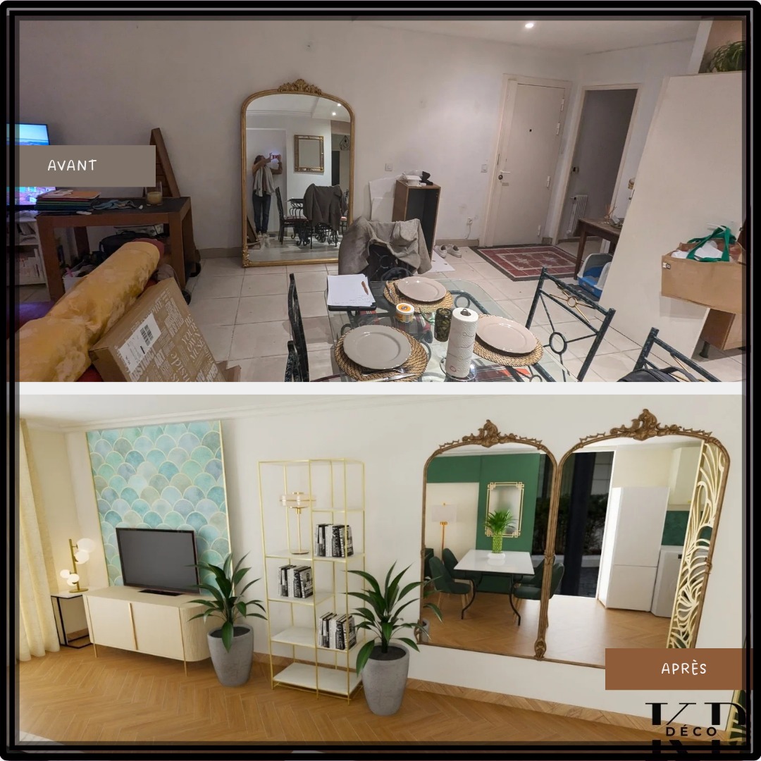 J’ai repensé les espaces pour répondre à leurs besoins : création d’une véritable entrée structurée, optimisation de la cuisine pour plus de fonctionnalité et sélection de matériaux et couleurs raffinés pour sublimer le style Art déco. Le résultat ? Un intérieur chic et cohérent, mêlant caractère et modernité.
