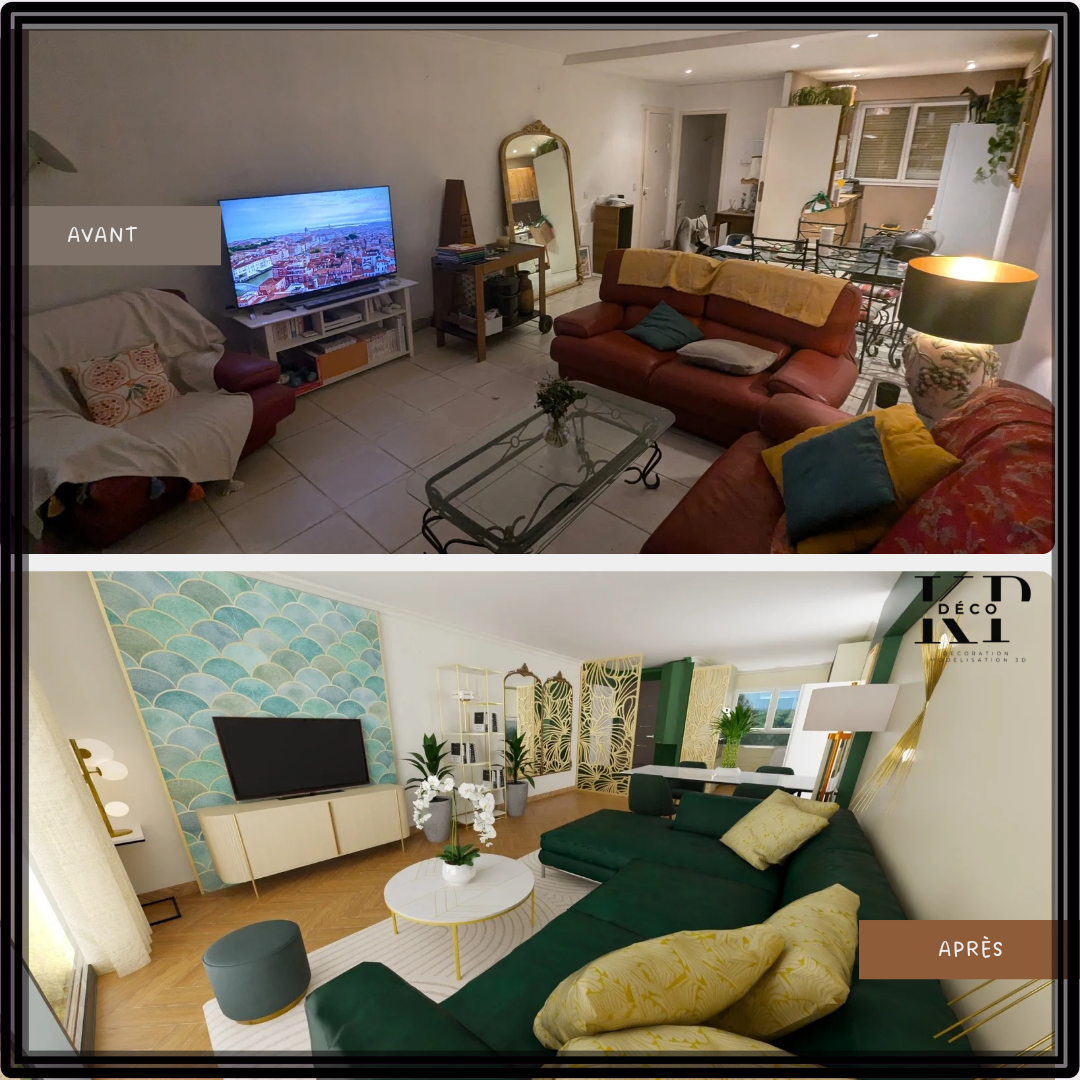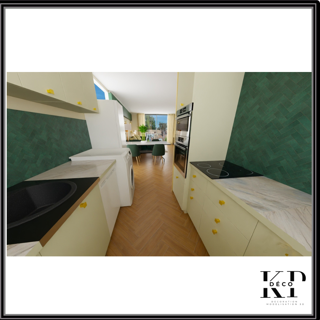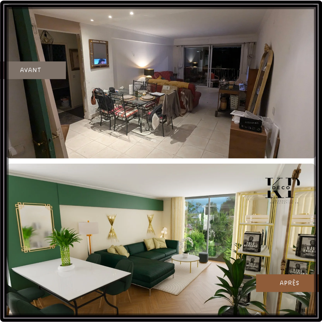 J’ai repensé les espaces pour répondre à leurs besoins : création d’une véritable entrée structurée, optimisation de la cuisine pour plus de fonctionnalité et sélection de matériaux et couleurs raffinés pour sublimer le style Art déco. Le résultat ? Un intérieur chic et cohérent, mêlant caractère et modernité.