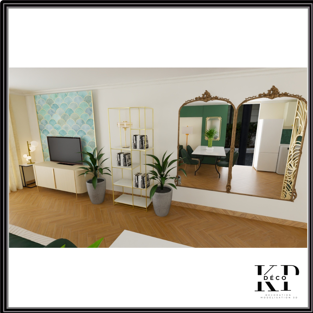 Nouvellement propriétaires, mes clients avaient du mal à se décider sur la décoration, malgré quelques idées précises et de beaux éléments existants, comme un canapé et un parquet en bâton rompu. Ils voulaient une ambiance Art déco élégante, mais ne savaient pas comment l’harmoniser dans l’ensemble de l’appartement.