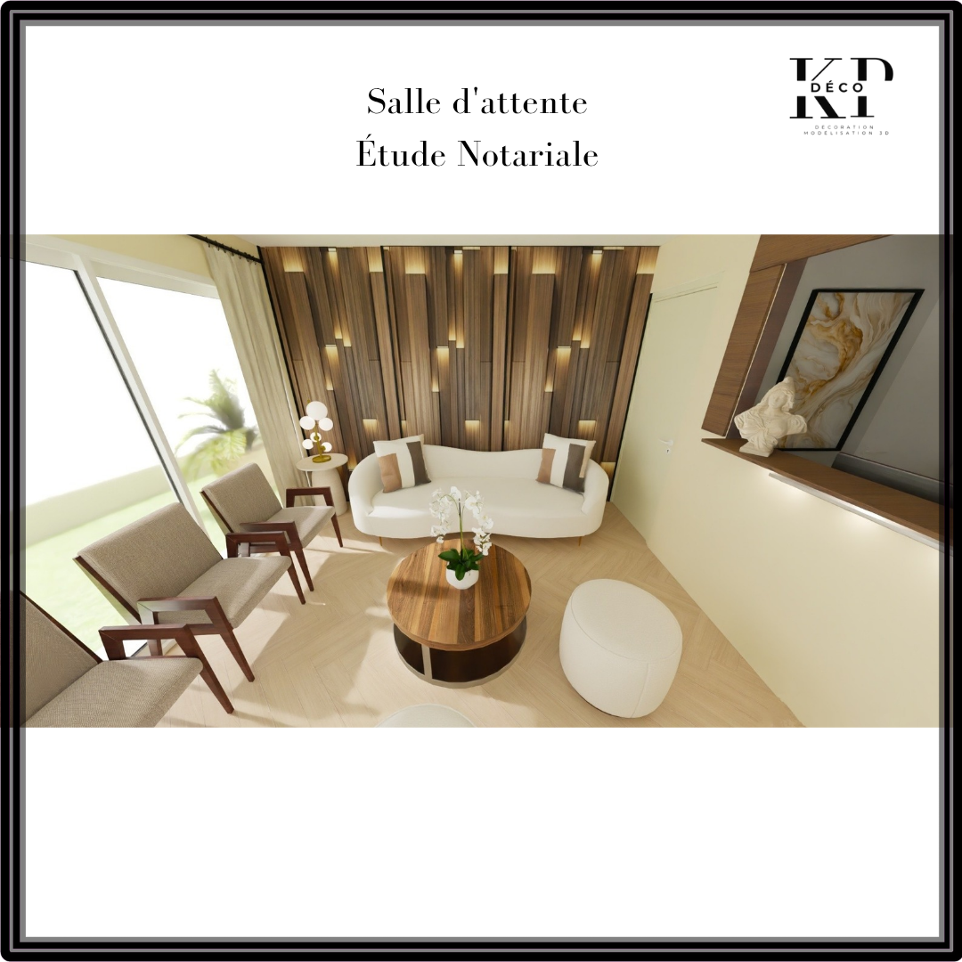 Pour ce projet, nous sommes partis de zéro. Ma cliente souhaitait un espace d’accueil chaleureux, haut de gamme et luxueux, capable de refléter parfaitement l’image et les valeurs de son étude notariale.