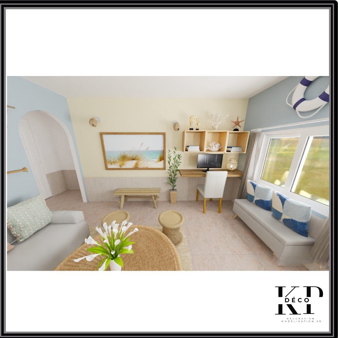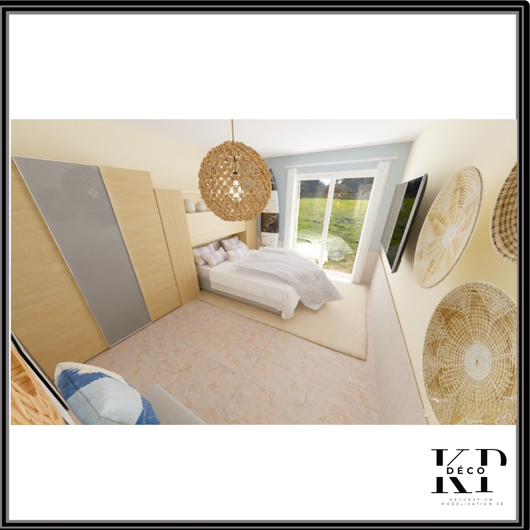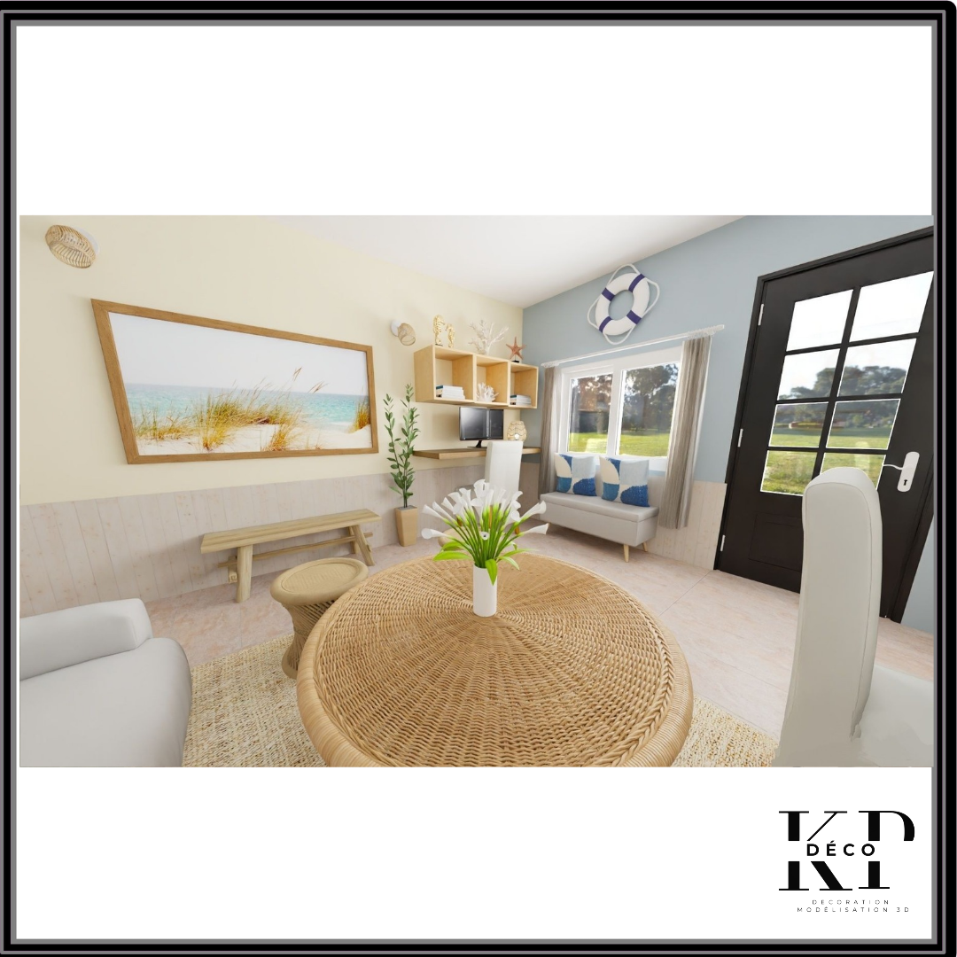 Un plan 3D et des photos réalistes générées à partir de plan 3D avec IA.