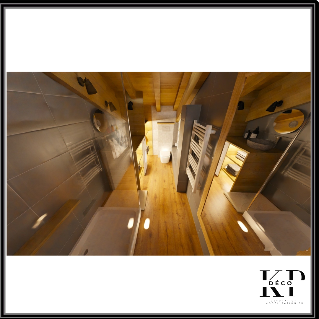 Un plan 3D et des photos réalistes générées à partir de plan 3D avec IA.