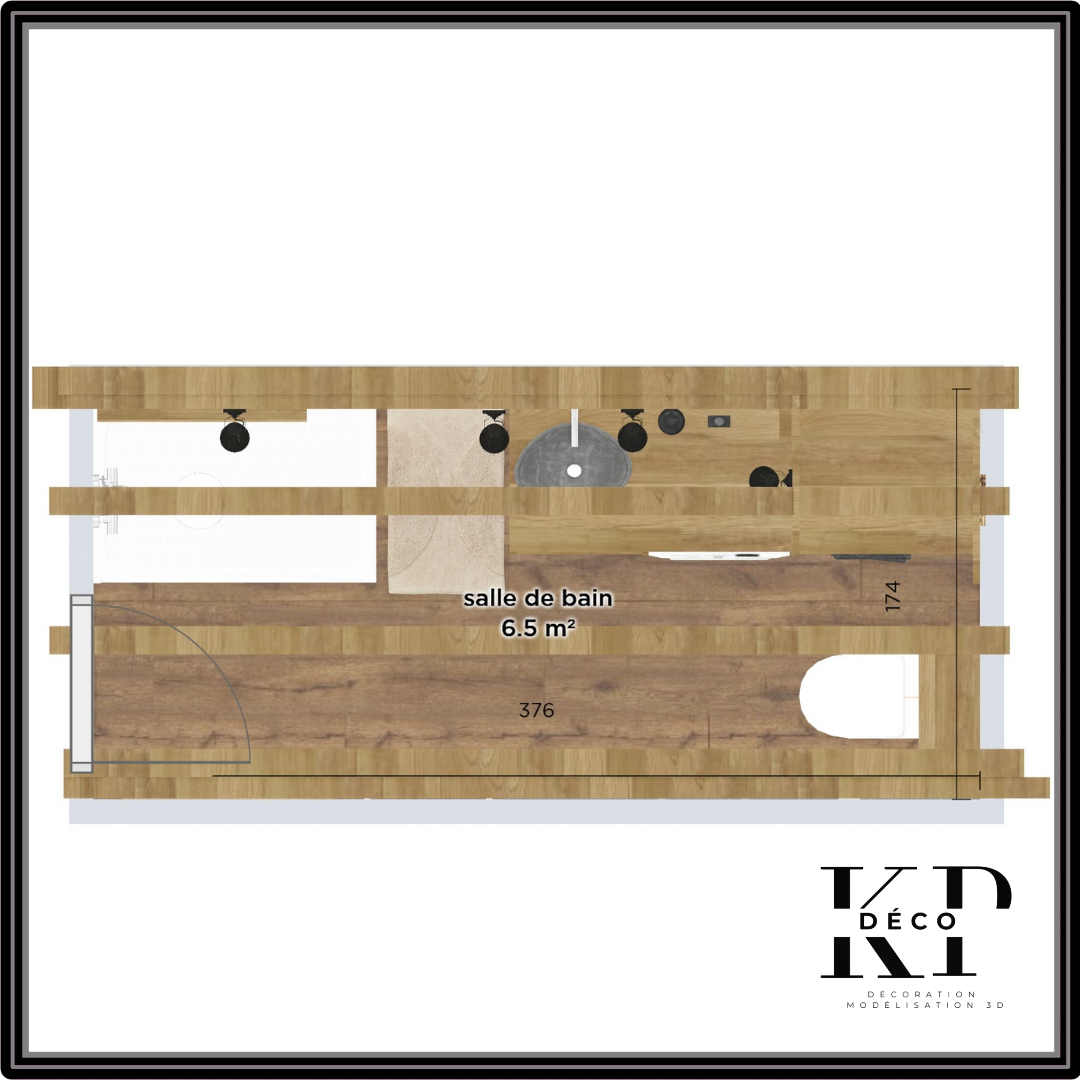 Un plan 2D simplifié pour visualiser l’agencement de l’espace, avec positionnement du mobilier ou des éléments décoratifs.