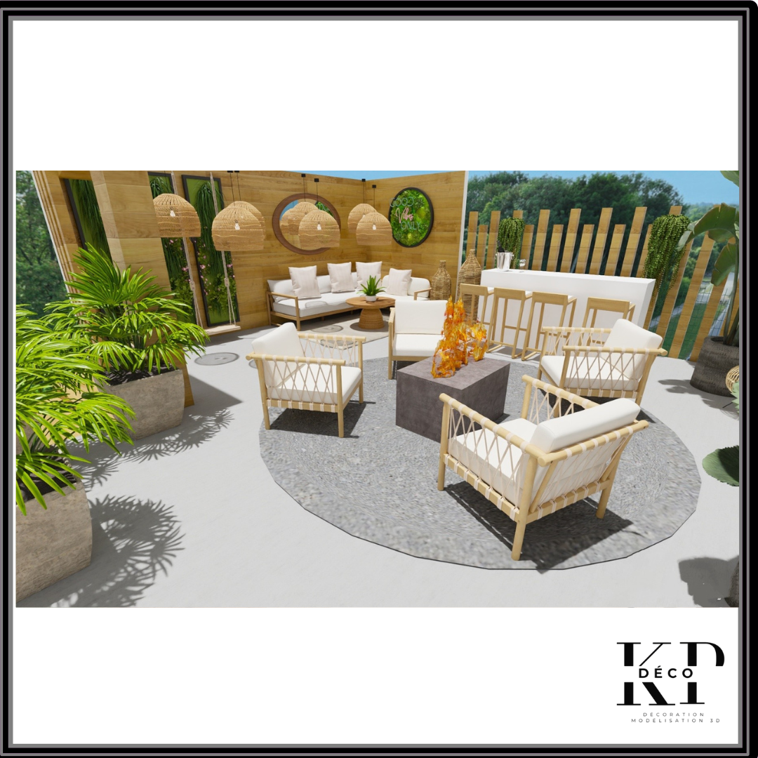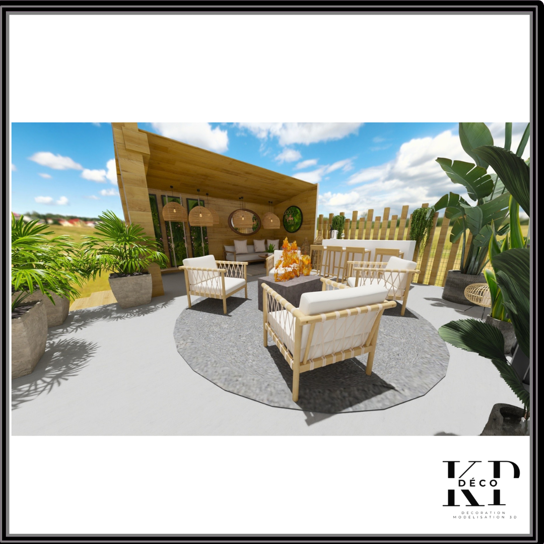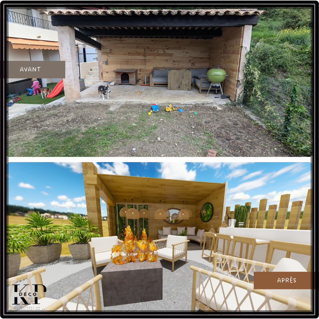 Pour cette terrasse en bord de Méditerranée, j’ai imaginé un espace à la fois apaisant, convivial et parfaitement adapté à la vie de famille. Bois, béton, blanc et végétation locale composent un décor naturel et lumineux, pensé pour durer et facile à vivre. Chaque élément a été conçu en fonction des habitudes et des envies de ce jeune couple avec enfants. Des assises confortables, des zones ombragées, et même des balançoires ont été intégrées pour le plus grand bonheur de leurs enfants, qui vont s’y régaler. Un extérieur sur mesure, où style et fonctionnalité se rencontrent avec simplicité.